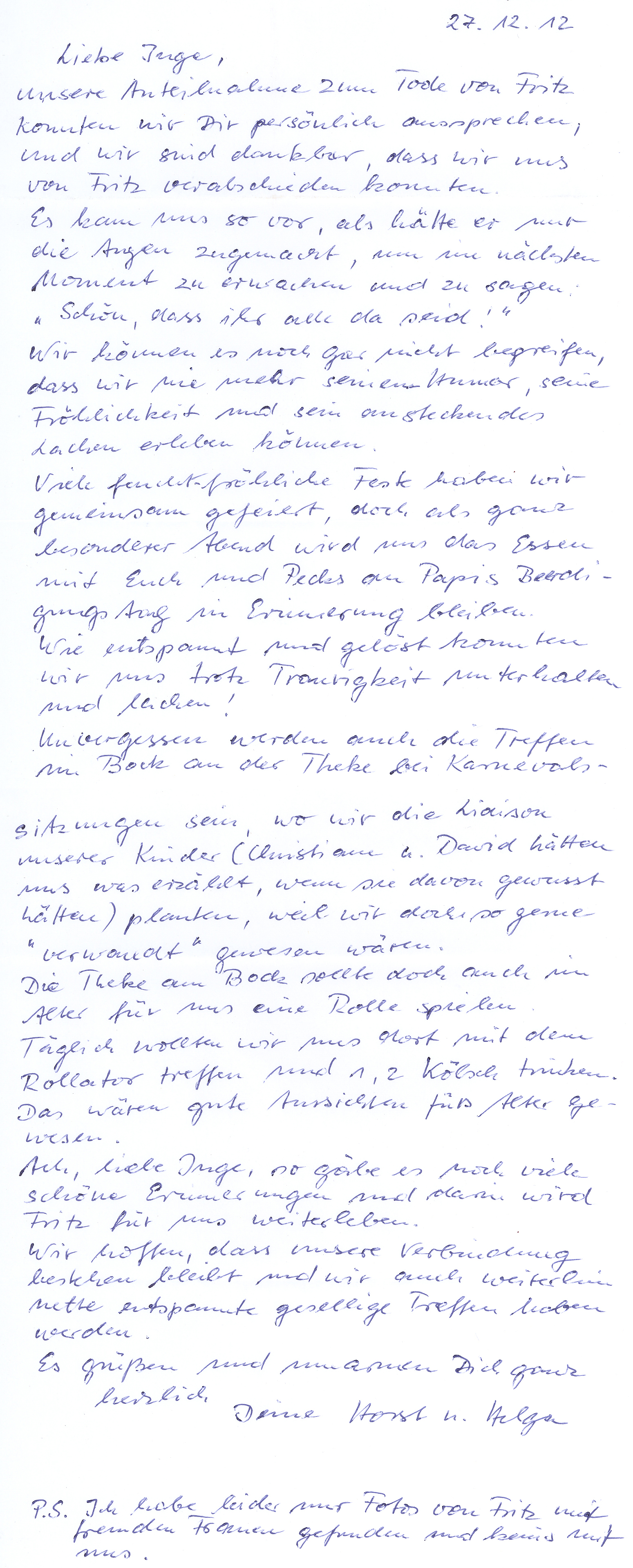 Unsere gemeinsamen Friedhofsfahrten boten uns Gelegenheit, mehr als nur Amtliches berufsmäßig auszutauschen.