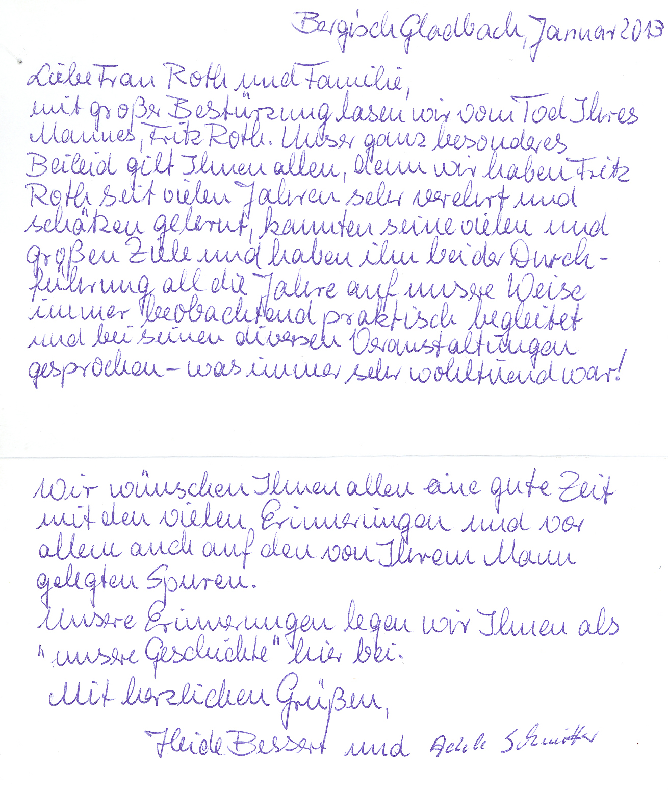 Über dreißig Jahre haben seine Anstöße im Bestattungswesen gewirkt, weit über Bergisch Gladbach hinaus. Vieles hat sich zum Besseren verändert. Und auch die Gemeinden und Pfarrer der evangelischen Kirche haben Fritz Roth viel zu verdanken.